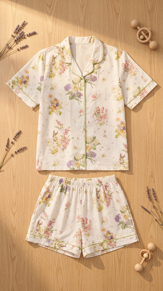 Vintage Cottage Floral Mommy and Me Pajamas — Short-Sleeve Set