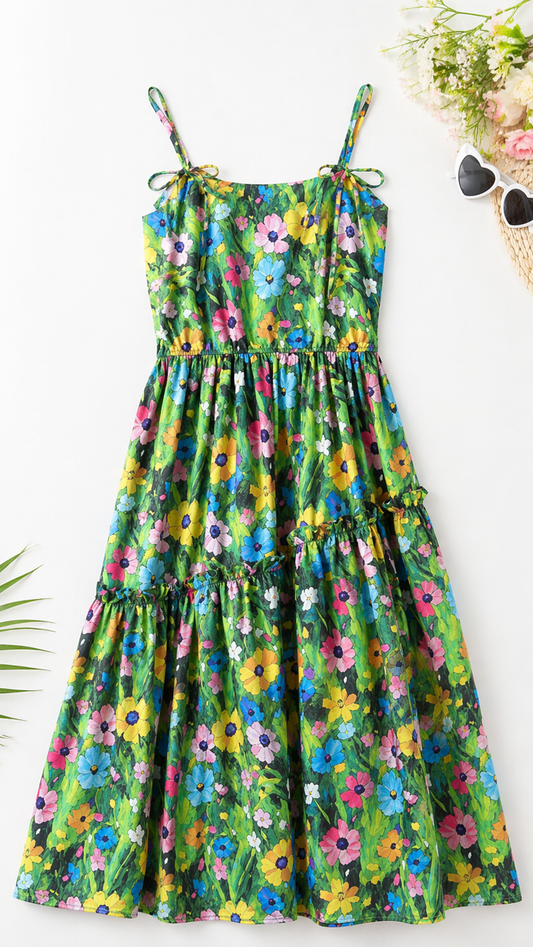 فساتين Willow Mist الأم وأنا - فستان صيفي بحاشية زهرية