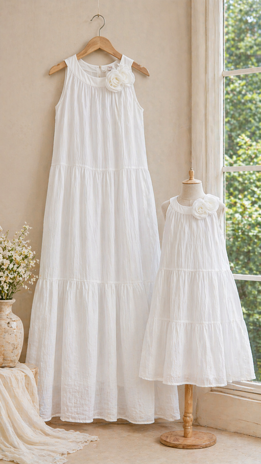 فساتين روزيت بيضاء الأم وأنا – فستان بلا أكمام متعدد الطبقات
