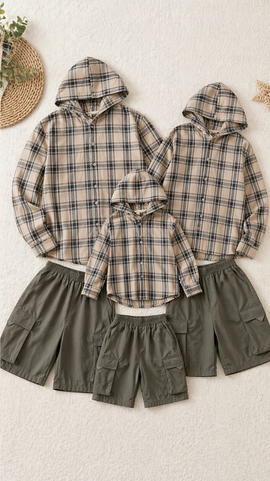 مجموعة مطابقة عائلية منقوشة Trail - قميص شمسي بغطاء للرأس وسروال قصير