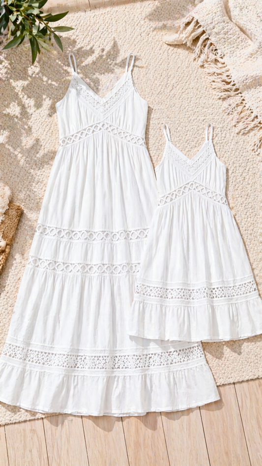 فساتين الدانتيل الأبيض الأم وأنا - فستان كامي