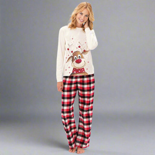 Matching Family Christmas Pajamas with Reindeer Print & Plaid Pants - Holiday Sleepwear Set for the Whole Family, Including Pets