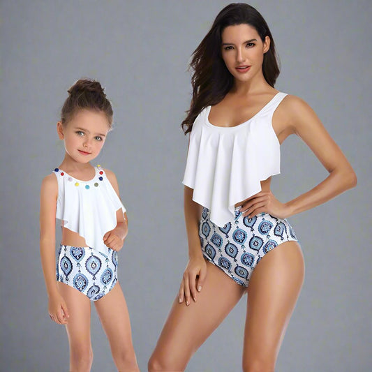 Matching Mother-Daughter Flowy Tankini Swimsuit Set – Floral Print & High-Waisted Bottoms