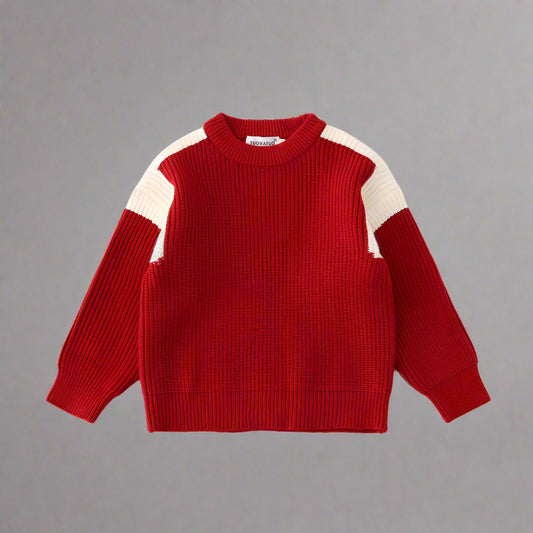 Matching Family Colorblock Knit Sweaters – Cozy Red with Modern Style