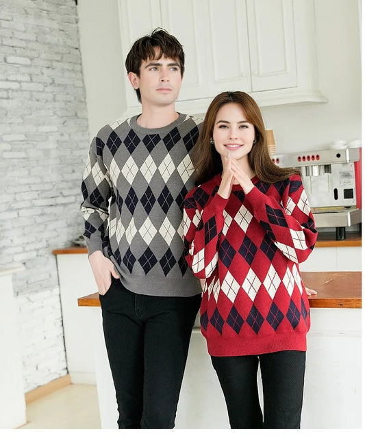 Family Matching Argyle Sweaters – Classic Knit Unisex Pullovers