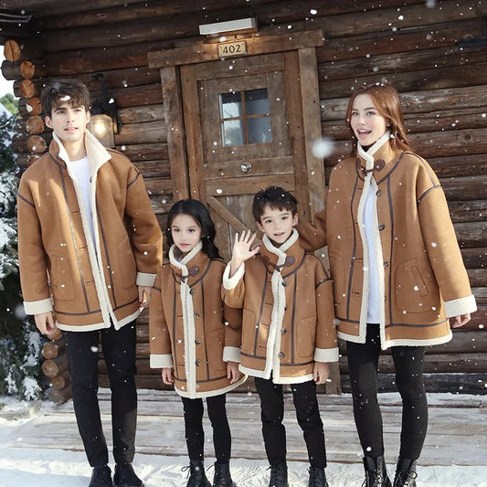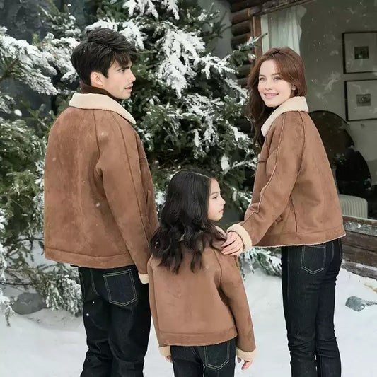 Family Matching Faux Shearling Jackets – Warm Winter Suede Coats