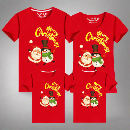 Matching Family Christmas T-Shirts – Santa & Snowman Festive Holiday Design