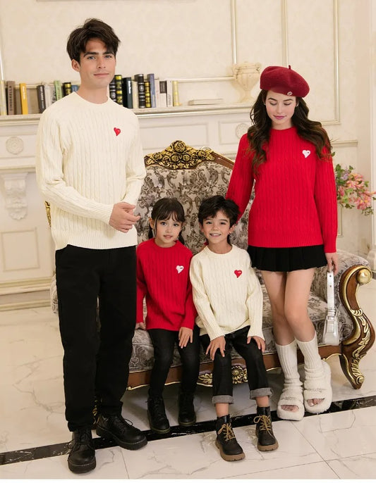 Family Matching Cable Knit Sweaters Heart Embroidered Unisex Pullovers