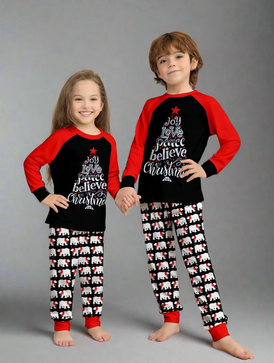 Matching Family Christmas Pajamas – Festive "Joy, Love, Peace" Polar Bear Set