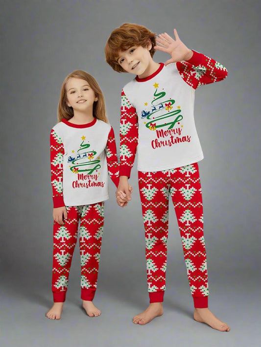 Matching Family Christmas Pajamas – Festive Christmas Tree & Holiday Print Set