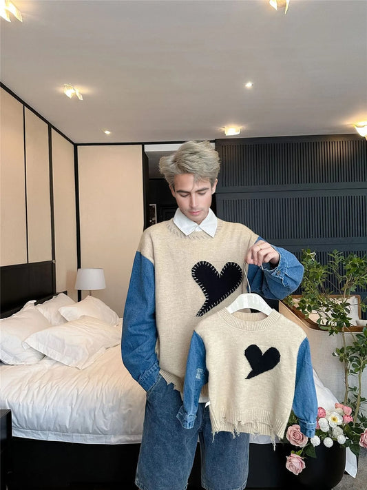 Family Matching Oversized Heart Patch Sweaters – Trendy Streetwear Style