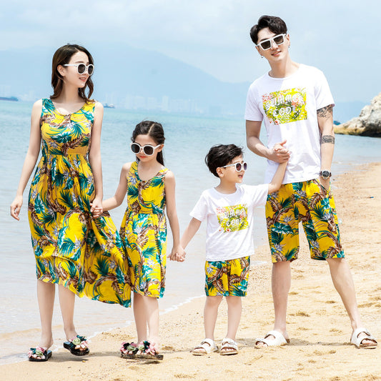 Matching Family Yellow Beach Outfits Summer Vacation Dresses & Shorts Set