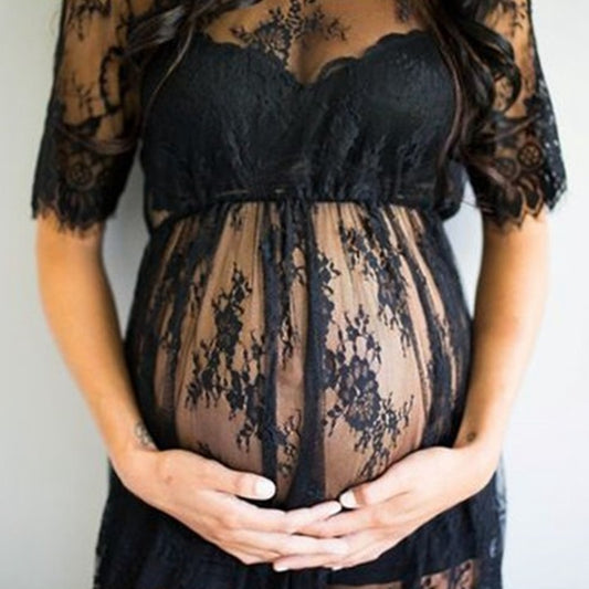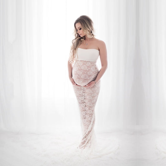 Maternity Photography Props Maxi Dresses See Through Eyelashes Lace