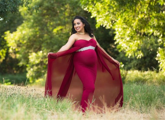 Maternity Dresses Sweet Heart Chiffon Cloak Maxi Gown