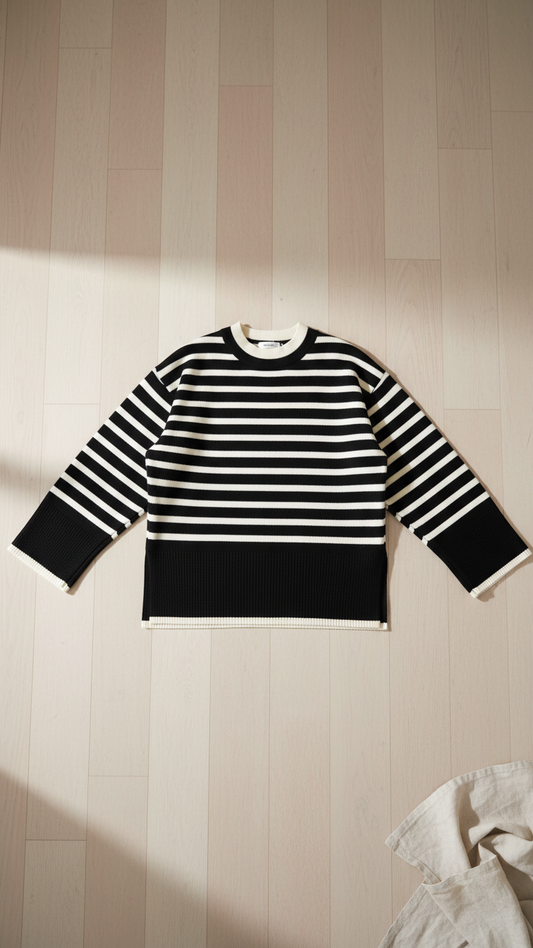 Cozy Matching Black & White Striped Sweater Set for... | DLM