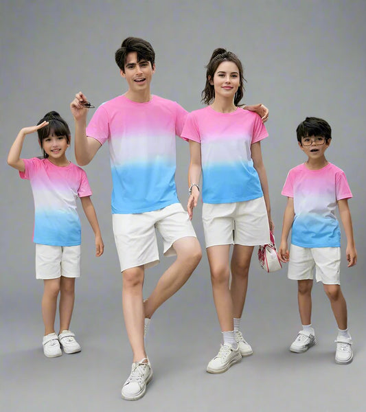Gradient Ombre Family Matching Outfits Pink & Blue T-Shirts with White Shorts Set