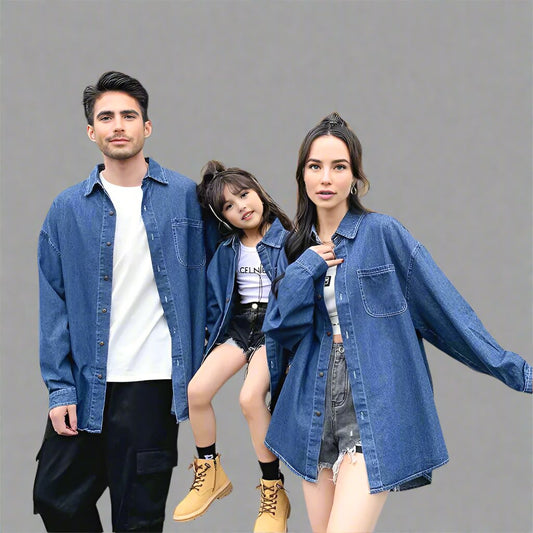 Matching Family Denim Button-Up Shirts Casual Unisex Jean Jackets for Parents and Kids