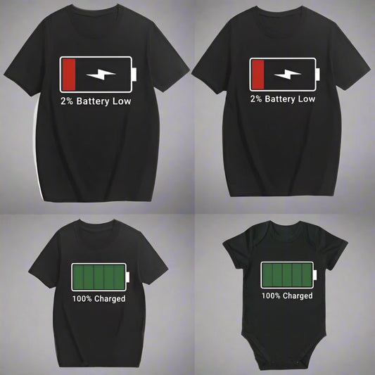 Battery-Themed Matching Family T-Shirt Set – Super Tired Parents & Energetic Kids