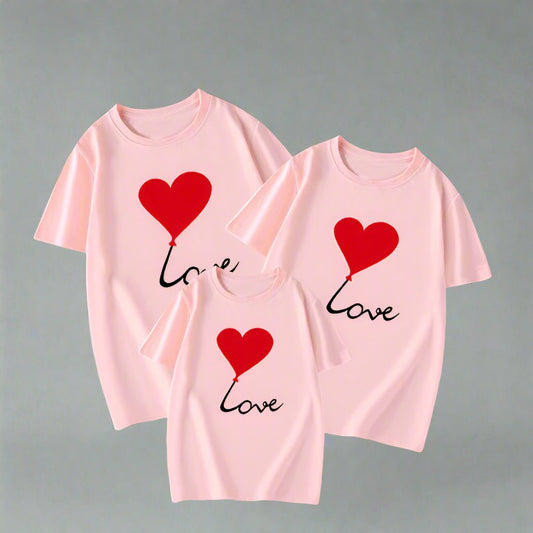 Matching Family "Love Balloon" T-Shirt Set – Heart & Love Design in 4 Colors