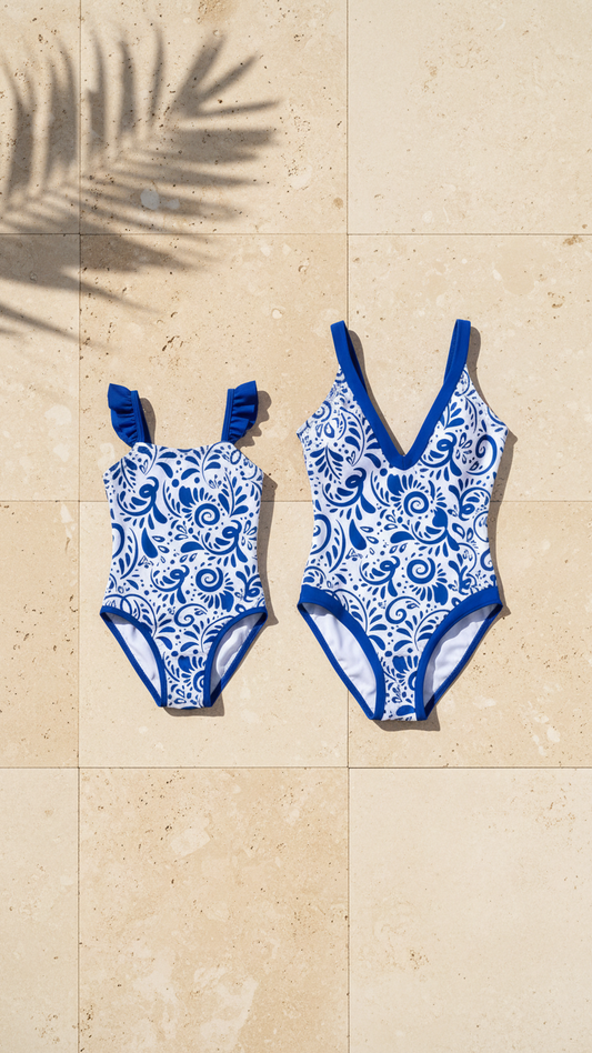 Chic Ocean Blue Mother-Daughter Swimsuit Duo Stylis... | DLM
