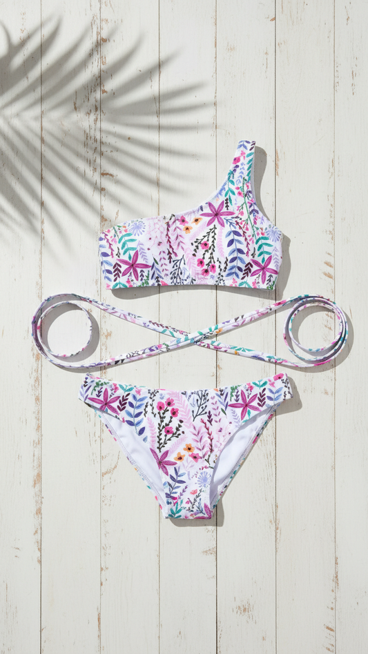 Chic Tropical One-Shoulder Ruffle Swimsuit Set for ... | DLM