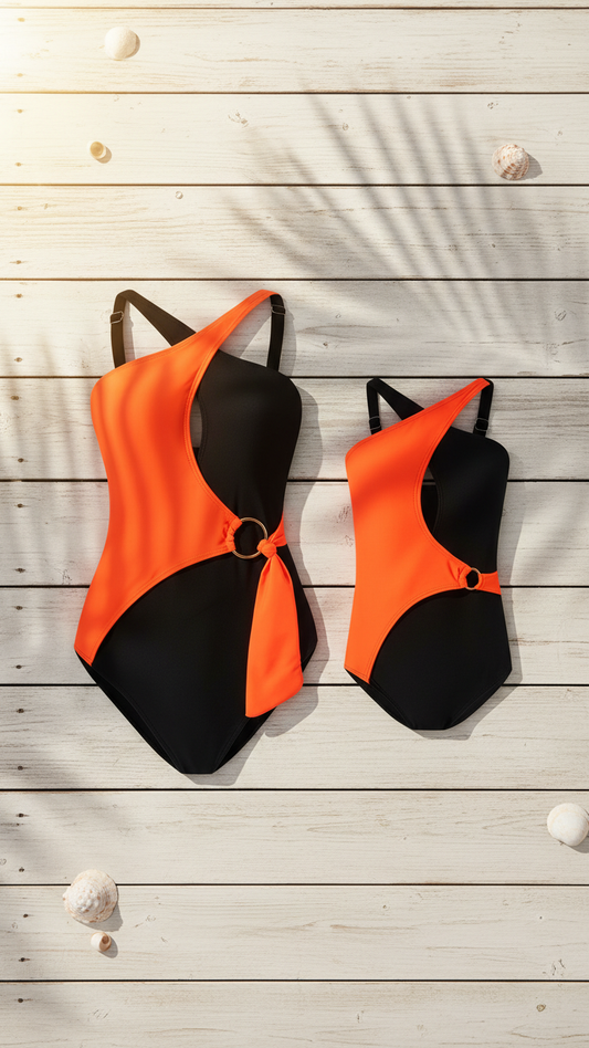 Mommy & Me" Vibrant Duo-Tone One-Piece Swimsuit wit... | DLM