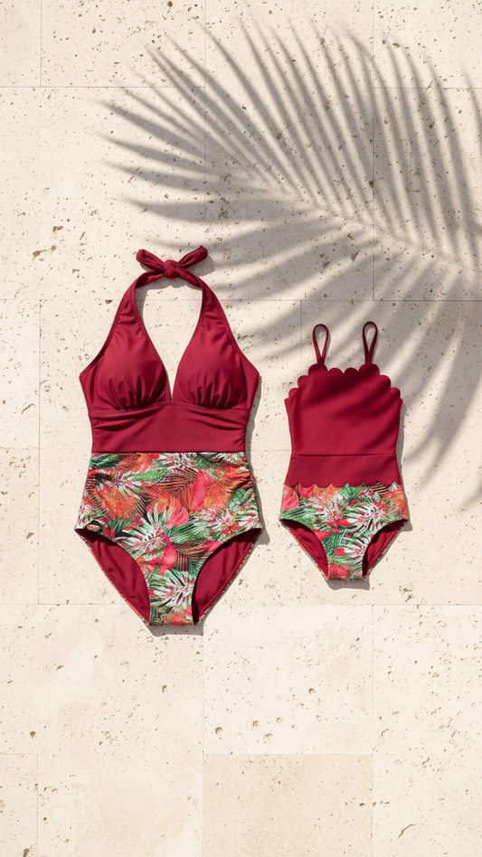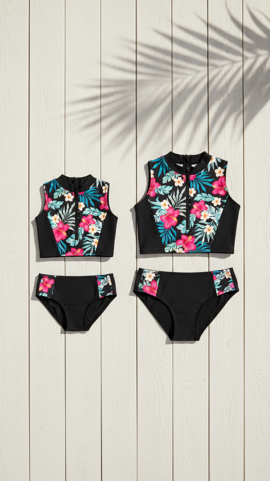 Chic Mother-Daughter Matching Swimsuit Set with Flo... | DLM