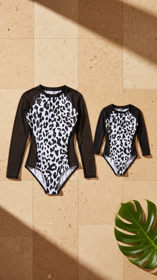 Elegant Long-Sleeve Leopard Print Swimsuit for Moth... | DLM