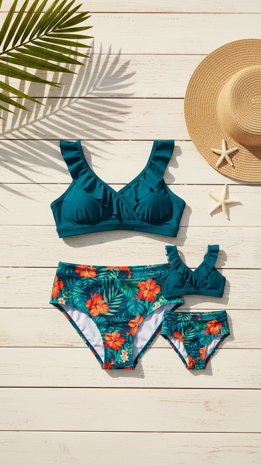 Traje de baño a juego con estampado de girasoles para mamá y yo
