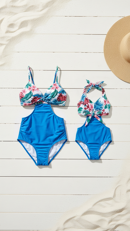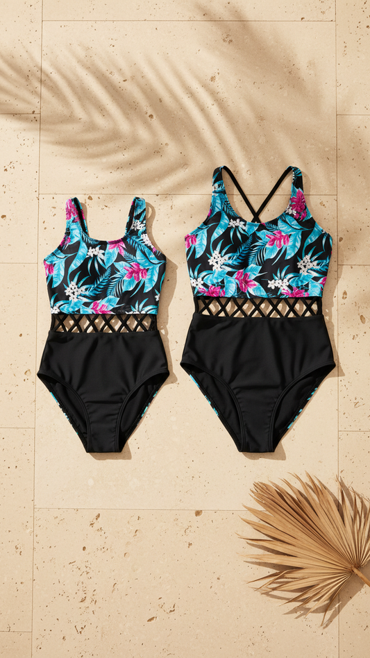 Traje de baño de una pieza con estampado floral a juego para mamá y yo