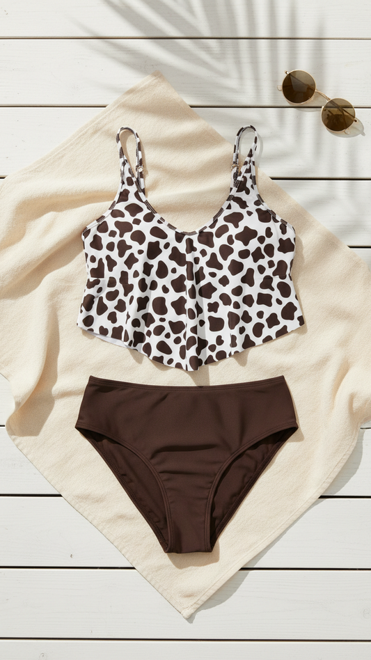 Traje de baño de dos piezas con estampado de leopardo a juego para mamá y yo