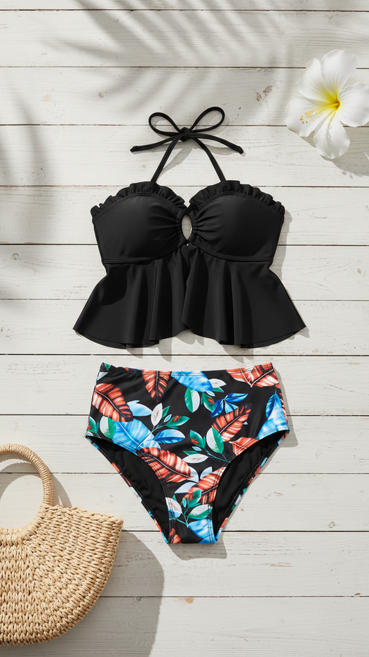 Traje de baño de una pieza con lazo recortado para padres e hijos