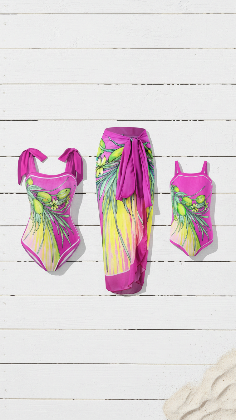 Nuestros trajes de baño están diseñados pensando en las familias, con tallas para mamás y sus pequeños. Los tirantes ajustables y la tela elástica garantizan un ajuste cómodo para usar todo el día. Ya sea construyendo castillos de arena o disfrutando de un día soleado en la piscina, este conjunto les permitirá a ti y a tu hija lucir elegantes y sentirse geniales.