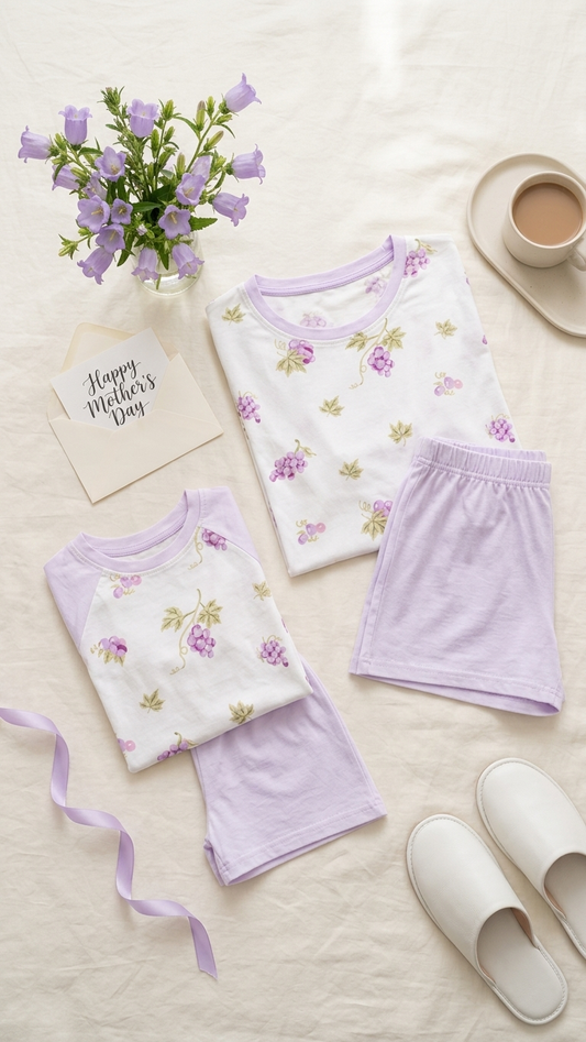 Grape Vineyard Mommy and Me Pajamas — Short-Sleeve Set