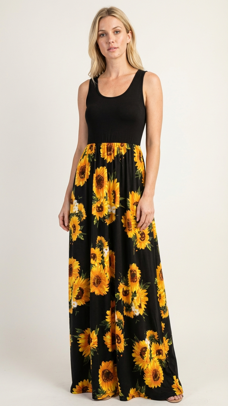 Step into sunny days with these adorable Mommy & Me Sunflower Maxi Dresses! Featuring a vibrant sunflower print, these sleeveless dresses are perfect for warm-weather outings, vacations, or just some fun bonding time. The fitted bodice paired with a flowy maxi skirt creates a flattering silhouette, while the lightweight and breathable fabric keeps you comfortable all day long. Available in both mustard yellow and black, this matching set offers a stunning look for any occasion. Whether you're headed to the park, enjoying a family photo session, or simply spending the day together, these sunflower dresses will have you and your little one twinning in style.